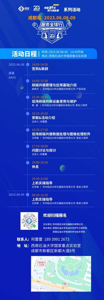 在這個春和景明,春林初盛的季節,紐邁分析第四屆服務全球行2023年度活動即將開啟,6月8日(周四)與您相約西南石油大學,成都站。