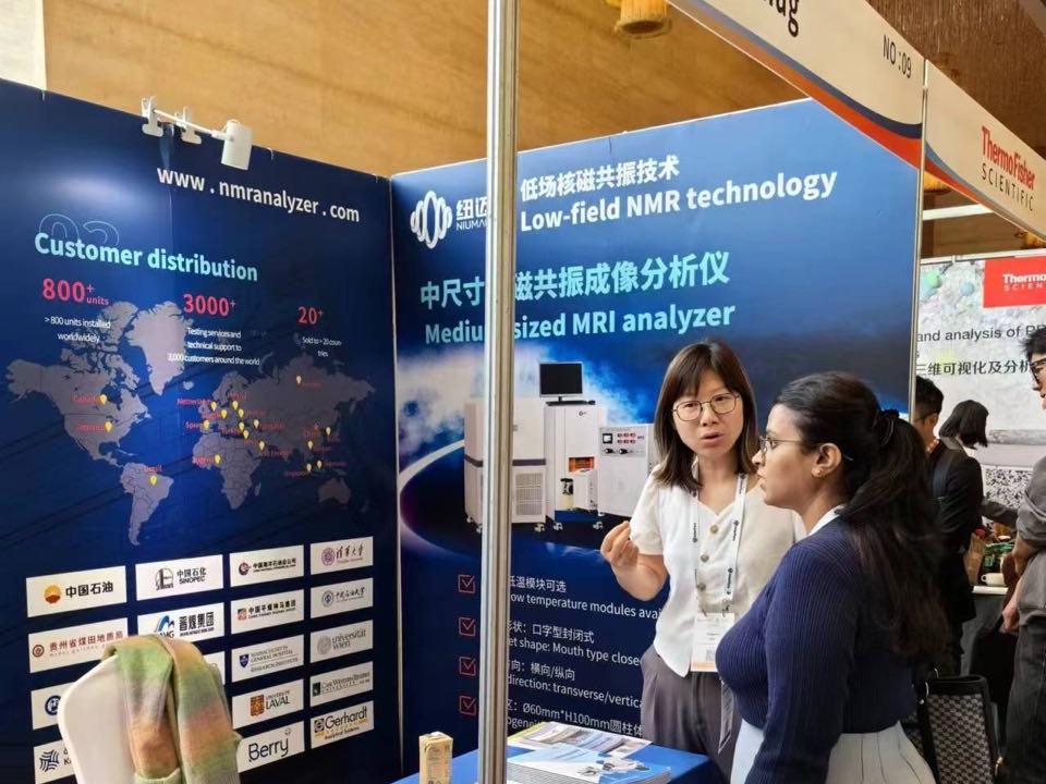 紐邁分析年會上的表現(xiàn)得到了與會專家的高度評價和認(rèn)可。許多參會者對公司的產(chǎn)品和技術(shù)表示出了濃厚的興趣,紐邁團(tuán)隊(duì)成員與現(xiàn)場觀眾進(jìn)行了深入的交流和討論,分享了紐邁分析低場核磁共振技術(shù)在多孔介質(zhì)分析方面成功的應(yīng)用案例。