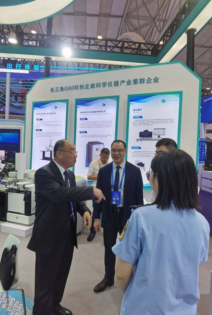 現場,長三角G60科創走廊科學儀器展區吸引了來自江蘇省、浙江省、四川省等省市級質檢系統等多個單位領導蒞臨展位參觀交流。