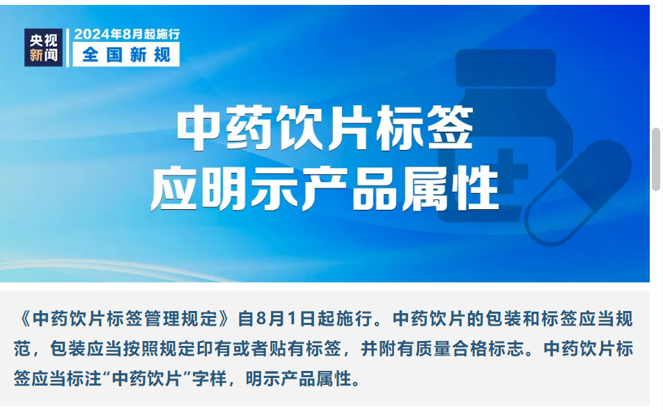 本月起一項關于中藥飲片的全國新規開始實施。國家藥監局發布的《中藥飲片標簽管理規定》,自2024年8月1日起施行。其中,保質期標注自2025年8月1日起實施。中藥飲片的定義按照中國藥典炮制通則中規定[1],根據藥材自身性質,以及調劑、制劑和臨床應用的需要,所采取的一項獨特的制藥技術。藥材凡經凈制、切制或炮炙等處理后均稱為”飲片”。